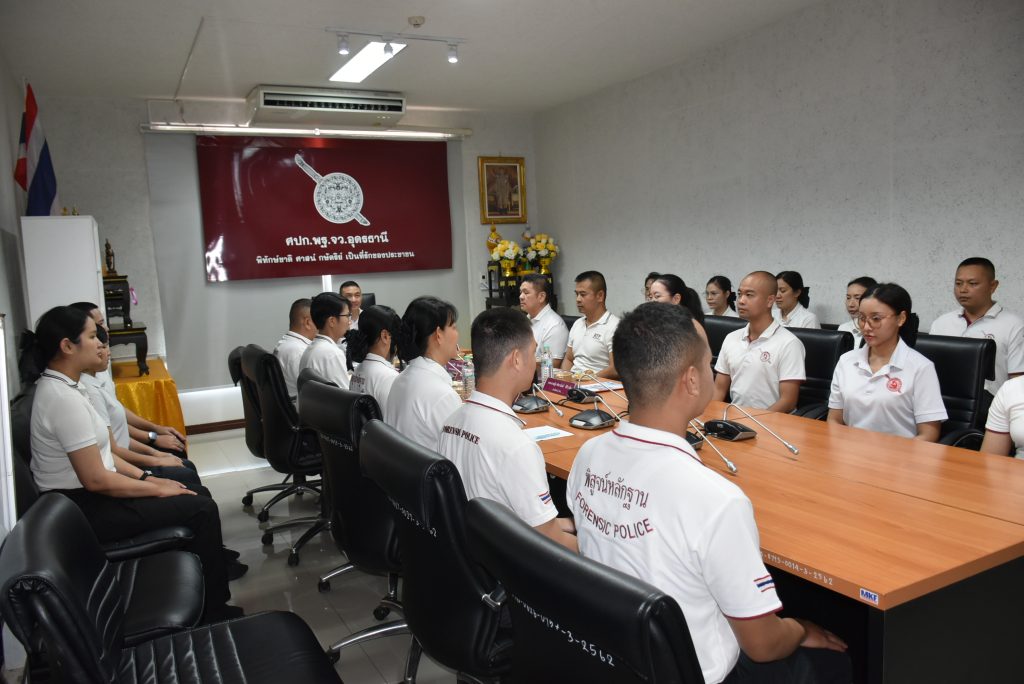 ผบช.สพฐ.ตร.และคณะ ตรวจเยี่ยม พฐ.จว.อุดรธานี March 16, 2569 by admin / กิจกรรม เมื่อวันที่ 13 มี.ค.69 เวลา 13.30 น. พล.ต.ท.อาทิชา เปาอินทร์ ผบช.สพฐ.ตร. พร้อมคณะ ได้เดินทางมาตรวจเยี่ยม พฐ.จว.อุดรธานี โดยมี พ.ต.อ.สันติรักษ์ มงคลนำ นวท.(สบ 4) พฐ.จว.อุดรธานี พร้อมด้วยข้าราชการตำรวจในสังกัดให้การต้อนรับ และได้เข้าร่วมประชุมรับฟังรายงานผลการปฏิบัติงานในด้านต่างๆ พร้อมรายงานปัญหาอุปสรรคและข้อขัดข้องในการดำเนินงาน ผบช.สพฐ.ตร. ได้กำชับให้ข้าราชการตำรวจในสังกัดยึดมั่นการปฏิบัติงานตามนโยบายการบริหารราชการของ ผบ.ตร., นโยบายของ ผบช.สพฐ.ตร. และนโยบายขับเคลื่อน สพฐ.ตร. ประจำปีงบประมาณ พ.ศ.2569 พร้อมทั้งได้ให้คำแนะนำแนวทางการพัฒนาและปรับปรุงการดำเนินงาน เพื่อให้งานเป็นไปอย่างมีประสิทธิภาพและเป็นมาตรฐานสากลยิ่งขึ้นได้กล่าวให้โอวาทแก่ข้าราชการตำรวจในสังกัดให้ปฏิบัติหน้าที่ด้วยความตั้งใจ ร่วมแรงร่วมใจทำงานเป็นทีม ยึดมั่นในความถูกต้อง รวดเร็ว และได้มาตรฐาน พร้อมอวยพรให้ข้าราชการตำรวจทุกนายและครอบครัวมีความสุข ความเจริญ และก้าวหน้าในหน้าที่ราชการต่อไป
