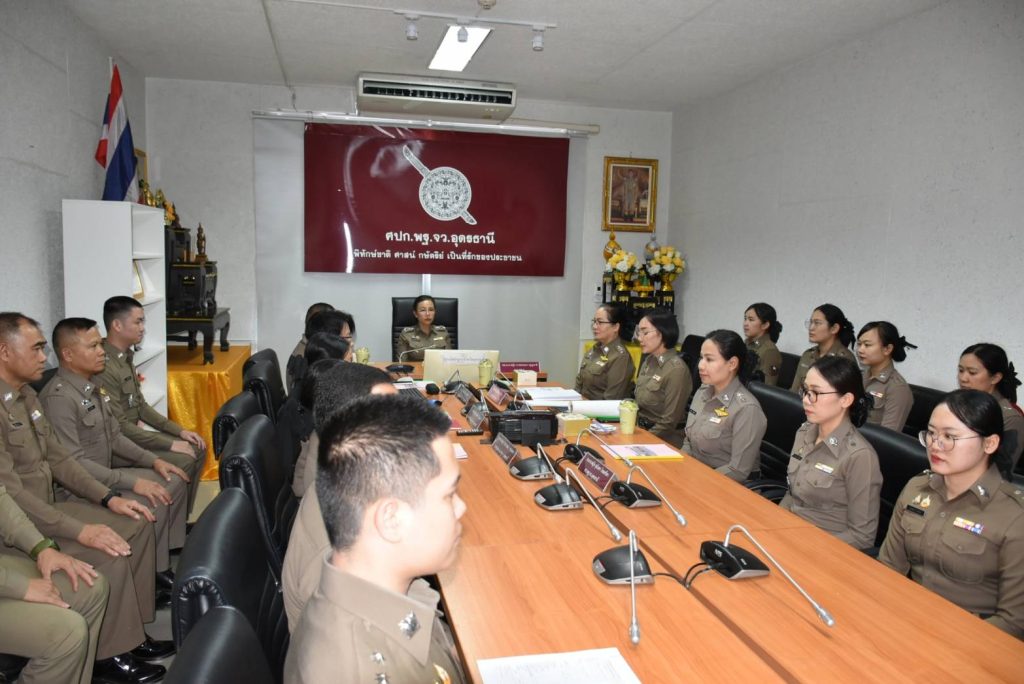 เมื่อวันที่ 24 ธ.ค. 68 เวลา 13.00 น. พล.ต.ต.หญิง นวลละออง จรูญชาติ ผบก.ศพฐ.4 พร้อมด้วย พ.ต.อ.หญิง วรัชยา อารีกุล นวท.(สบ 5) ศพฐ.4 และคณะ เดินทางตรวจเยี่ยมพฐ.จว.อุดรธานี โดยมี พ.ต.อ.สันติรักษ์ มงคลนำ นวท.(สบ 4) พฐ.จว.อุดรธานี และข้าราชการตำรวจในสังกัดให้การต้อนรับ โดย ผบก.ศพฐ.4 ได้มอบนโยบายตามผู้บังคับบัญชาสั่งการ กำชับการปฏิบัติงานและปฏิบัติตามระเบียบวินัยของทางราชการ ตรวจงานอำนวยการ งานทะเบียนประวัติอาชญากร งานตรวจสถานที่เกิดเหตุ และตรวจคลังยาเสพติดให้โทษ ให้มีความเรียบร้อยปลอดภัย รวมถึง รับฟังปัญหาข้อขัดข้องในการปฏิบัติงาน พร้อมทั้งให้คำแนะนำแก้ไข ให้กำลังใจในการปฏิบัติหน้าที่ราชการ