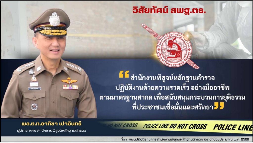 ๕. ดำเนินการเกี่ยวกับการฝึกอบรมงานด้านพิสูจน์หลักฐาน และงานด้านวิทยาการตำรวจของสำนักงานตำรวจแห่งชาติ