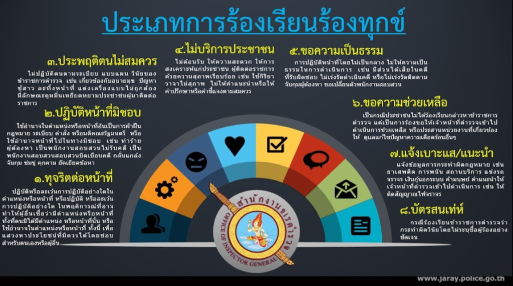 ท่านสามารถแจ้งเรื่องร้อทุกข์หรือเบาะแสเกี่ยวกับการทุจริตและประพฤติมิชอบของเจ้าหน้าที่ได้